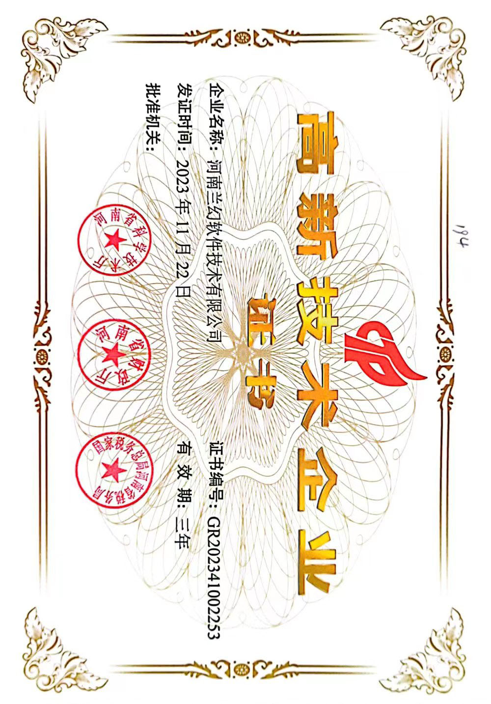 2023年再次被河南省科學(xué)技術(shù)廳、河南省財(cái)政廳、國(guó)家稅務(wù)總局河南省稅務(wù)局三方認(rèn)證“高新技術(shù)企業(yè)”。